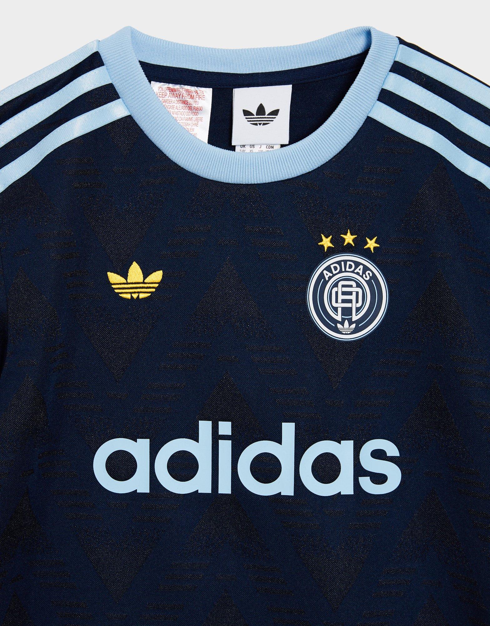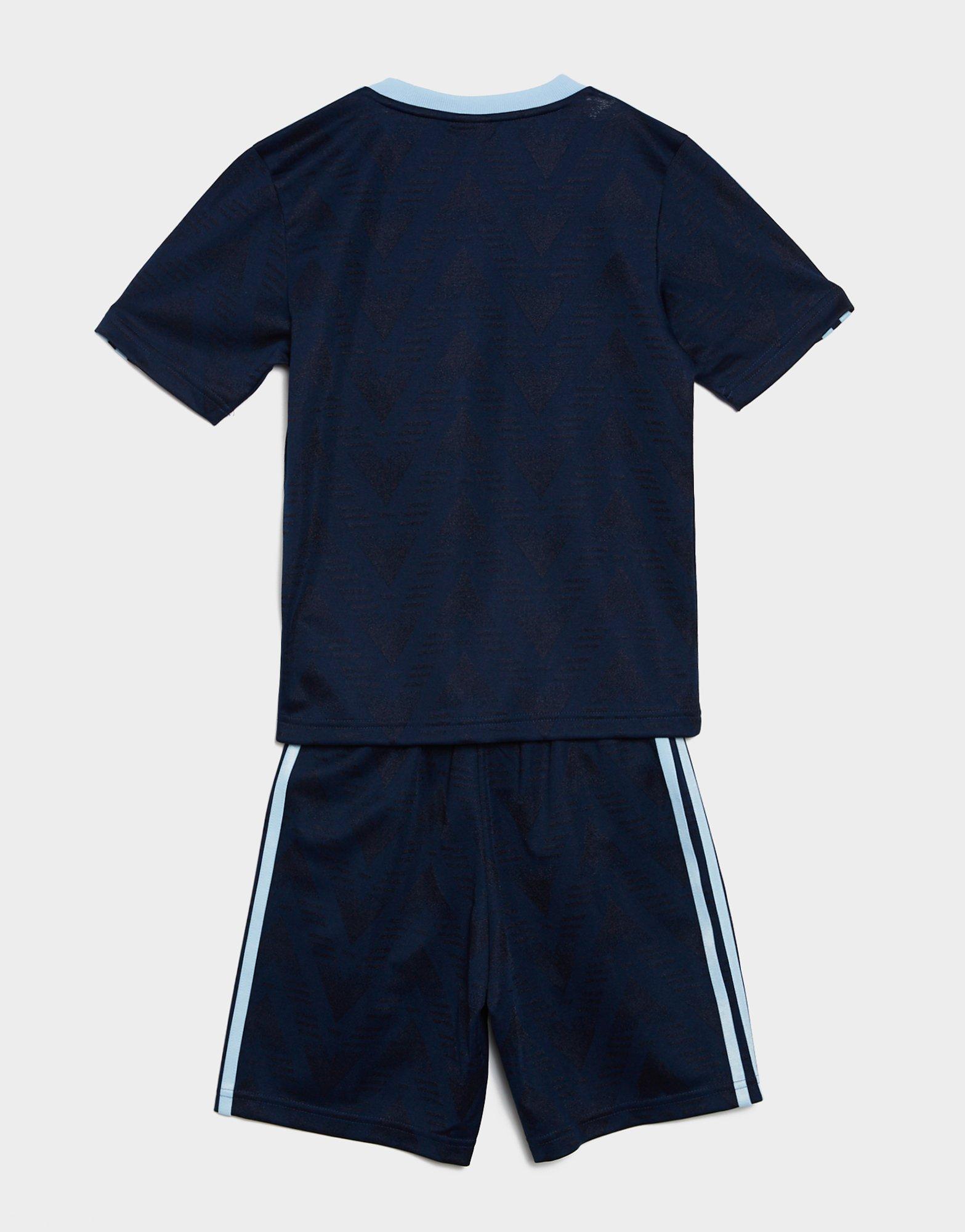 Komplet adidas Jacquard Set to doskonała propozycja dla dzieci, które kochają aktywność i klasyczny look. Granatowa kolorystyka zestawiona z błękitnymi paskami nawiązuje do tradycyjnych strojów piłkarskich, nadając całości profesjonalnego charakteru. Lekki materiał i swobodny krój sprawiają, że zestaw prezentuje się świetnie zarówno na placu zabaw, jak i podczas rodzinnych spacerów.