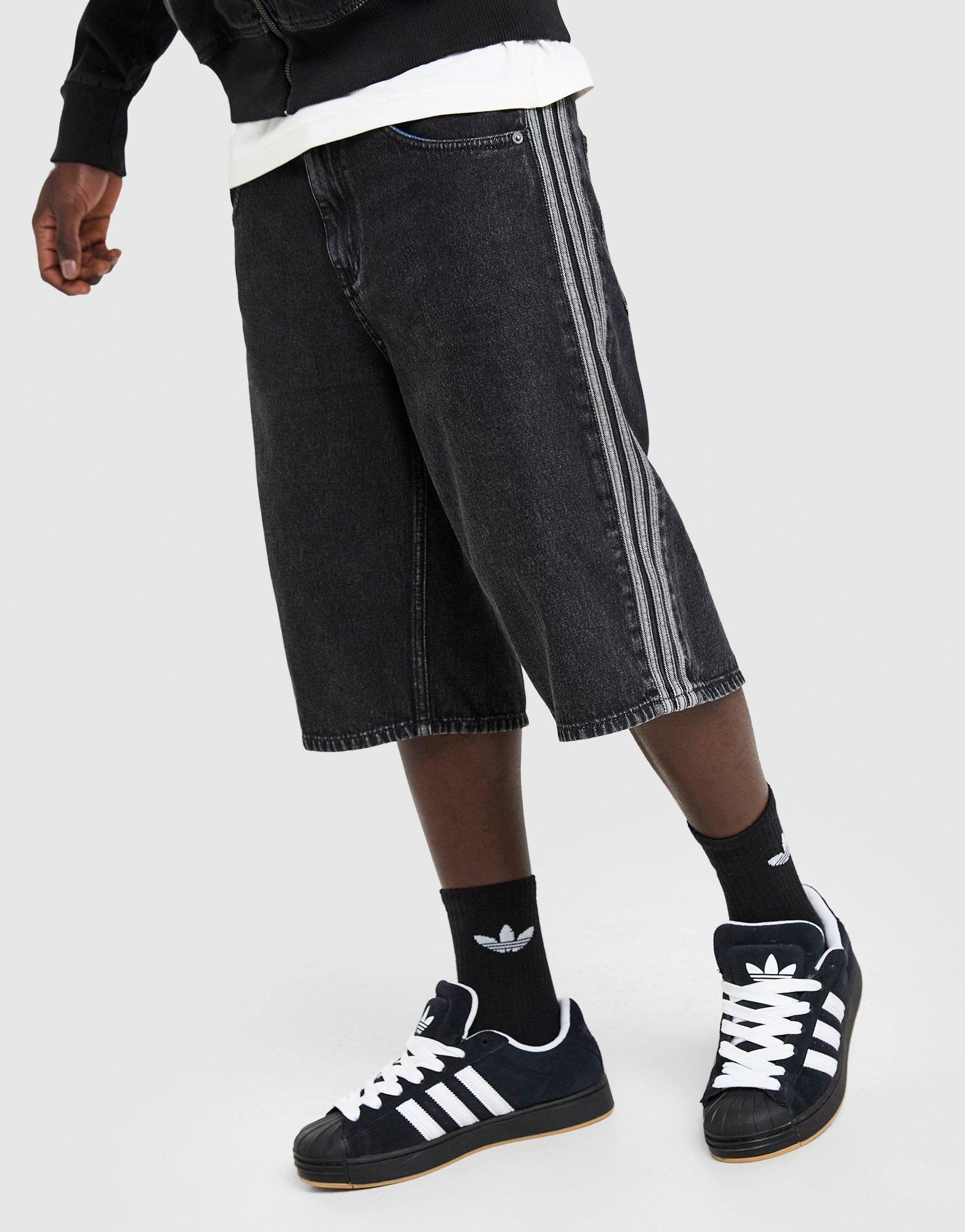 Spodenki zostały wykonane w 100% z wytrzymałej bawełny o strukturze jeansu, co zapewnia odporność na codzienne użytkowanie i komfort noszenia. Model charakteryzuje się szerokimi nogawkami sięgającymi kolan oraz precyzyjnym wykończeniem szwów. Na bokach umieszczono trzy legendarne paski w kontrastowym kolorze, a subtelne logo marki podkreśla autentyczność i sportowe dziedzictwo linii Originals.