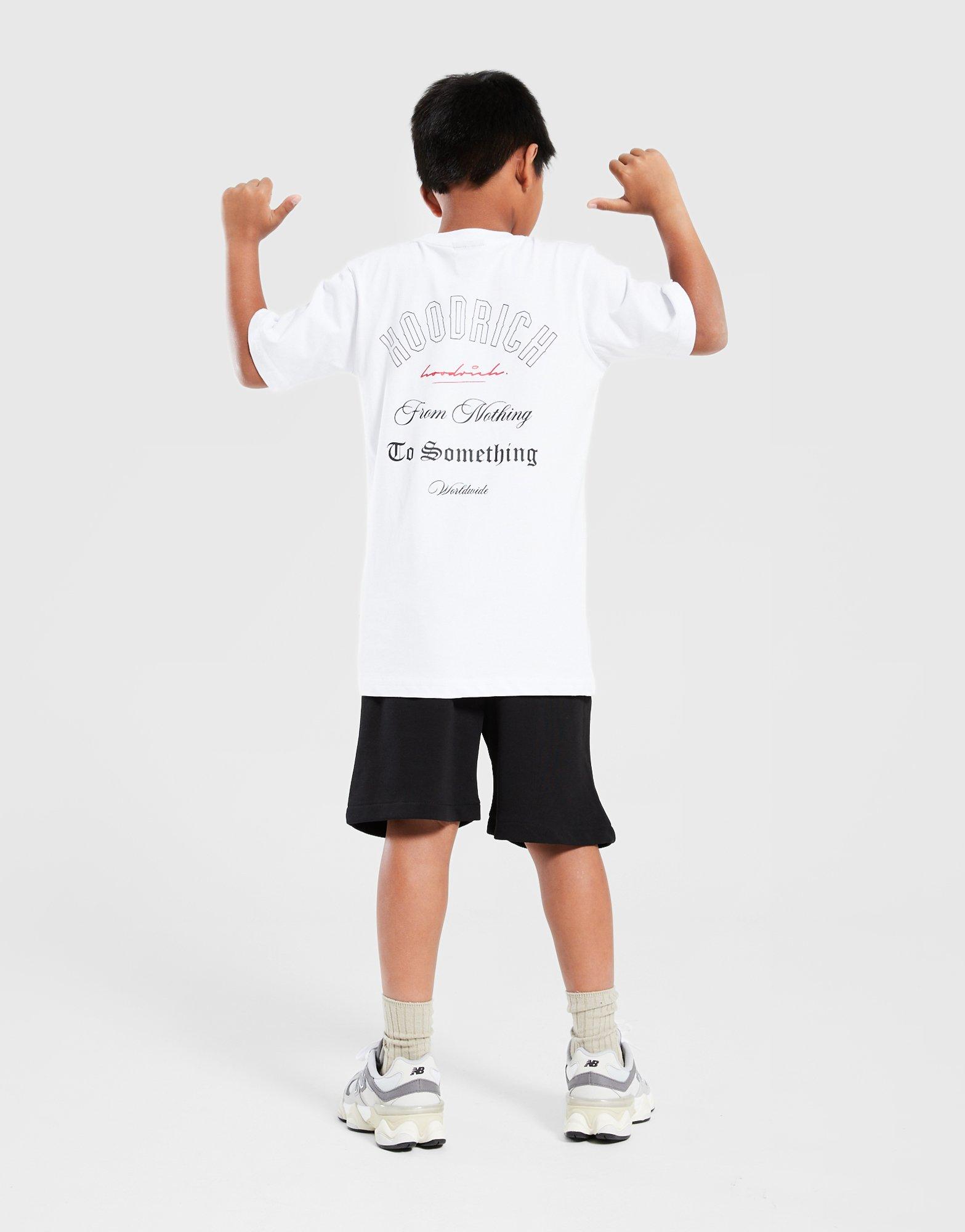 Dziecięcy komplet Hoodrich Set Tee&shorts to idealne połączenie miejskiego stylu i codziennej wygody. Zestaw składający się z klasycznego białego t-shirtu oraz czarnych spodenek zapewnia pełną swobodę ruchów podczas każdej aktywności. Wyraziste logo marki nadaje całości nowoczesnego, streetwearowego charakteru, który wyróżni każdego młodego fana mody.