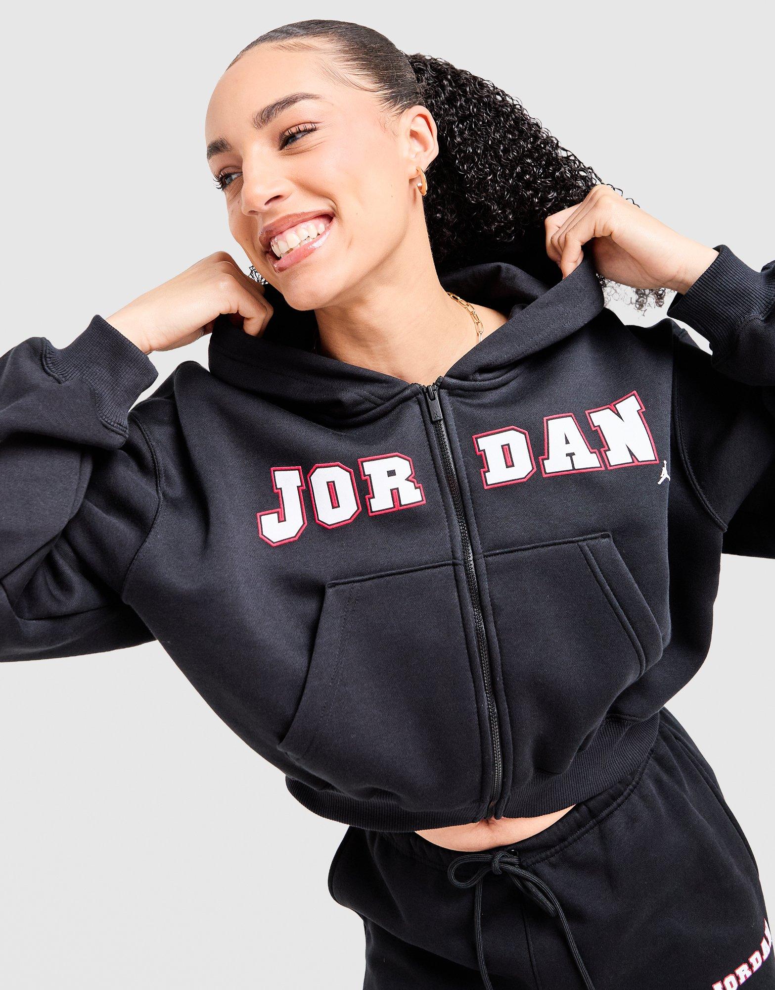 Damska bluza Jordan o skróconym kroju to idealne połączenie sportowego luzu i miejskiego stylu. Wykonana z miękkiej dzianiny dresowej, zapewnia wyjątkowy komfort cieplny podczas chłodniejszych dni. Wyrazisty napis na piersi nadaje całości unikalnego charakteru, doskonale uzupełniając codzienne stylizacje.