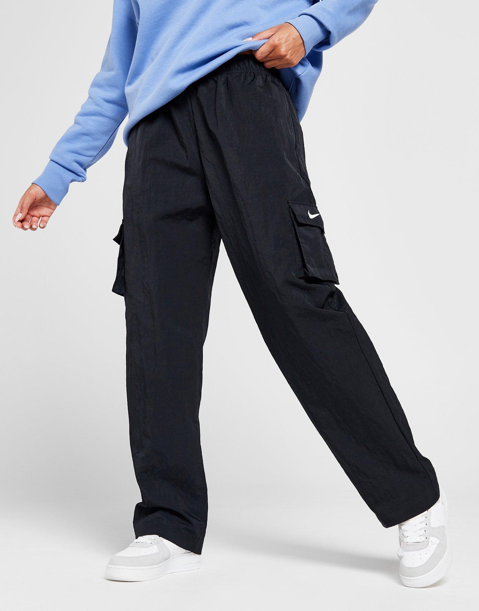 Czarne spodnie cargo Nike Essential Woven to idealne połączenie miejskiego stylu i wyjątkowej wygody. Wykonane z lekkiego nylonu, zapewniają swobodę ruchów oraz trwałość podczas codziennych aktywności. Wysoki stan i regulowany pas gwarantują perfekcyjne dopasowanie do kobiecej sylwetki.