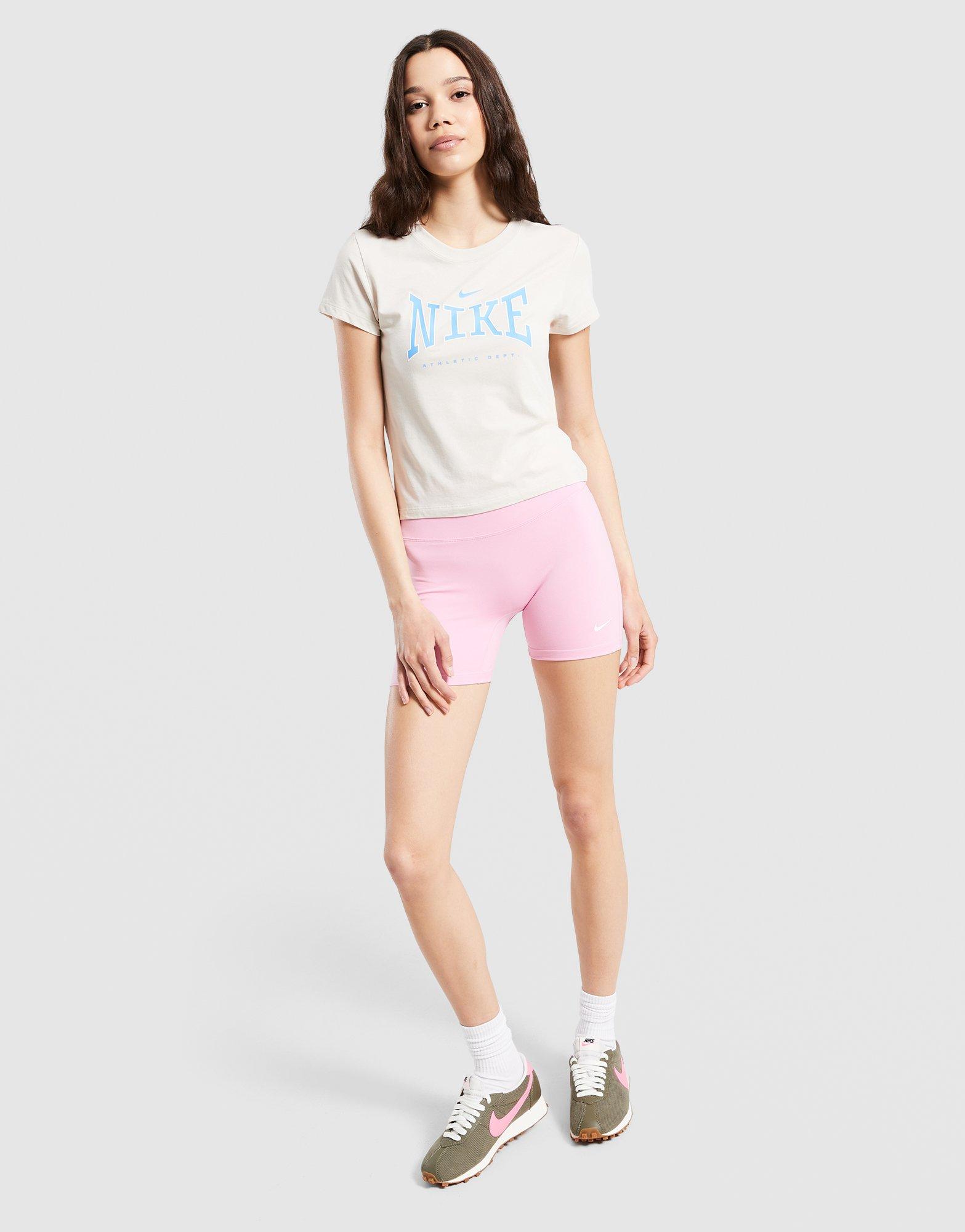 Ten beżowy T-shirt Nike to idealne połączenie miejskiego stylu i sportowej wygody. Model o skróconym kroju został wykonany z miękkiej mieszanki materiałów, która świetnie dopasowuje się do sylwetki. Wyrazista grafika w błękitnym kolorze nawiązuje do dziedzictwa marki, nadając całości unikalny charakter retro.