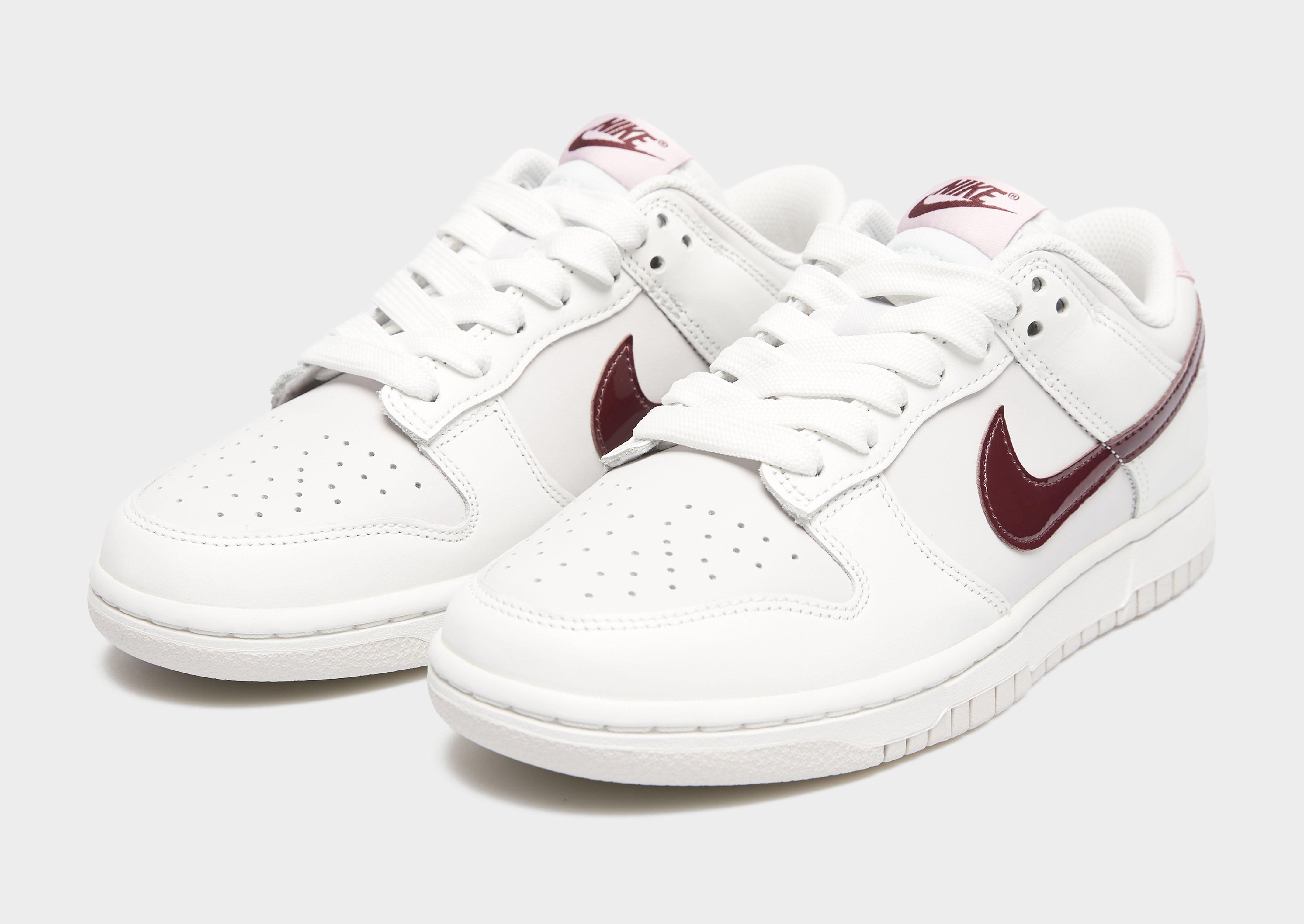 Te damskie sneakersy Nike Dunk Low łączą koszykarskie dziedzictwo z nowoczesnym, miejskim stylem. Wykonana ze skóry naturalnej cholewka w białym kolorze została przełamana kontrastującym, bordowym logo Swoosh. Miękki kołnierz i piankowa podeszwa zapewniają wyjątkową wygodę podczas intensywnego dnia w mieście.