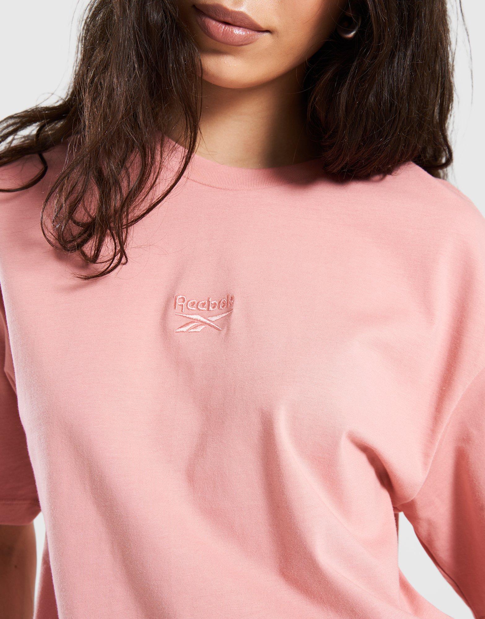 Różowy T-shirt Reebok Wardrobe Essentials to idealna baza dla każdej kobiecej garderoby. Wykonany z miękkiej bawełny, zapewnia maksymalny komfort i swobodę ruchów dzięki fasonowi oversize. Subtelne logo na piersi dodaje sportowego charakteru Twoim codziennym stylizacjom.