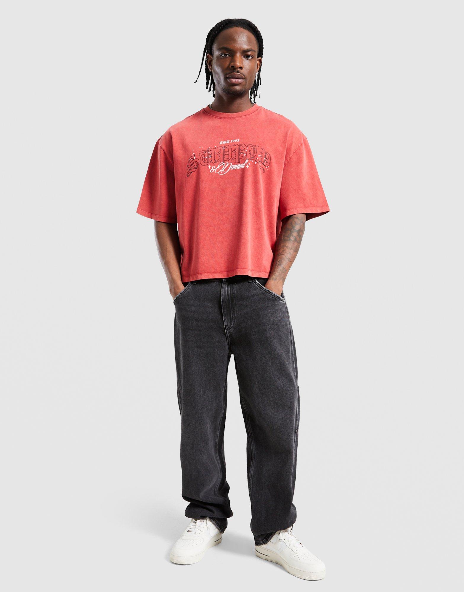 Czerwony t-shirt Supply & Demand Gamer Tee to idealny wybór dla miłośników miejskiego stylu z nutką retro. Wykonany z miękkiej bawełny o efekcie sprania, zapewnia wyjątkowy komfort oraz unikalny wygląd każdego dnia. Wyrazista grafika na klatce piersiowej podkreśla streetwearowy charakter Twojej stylizacji.