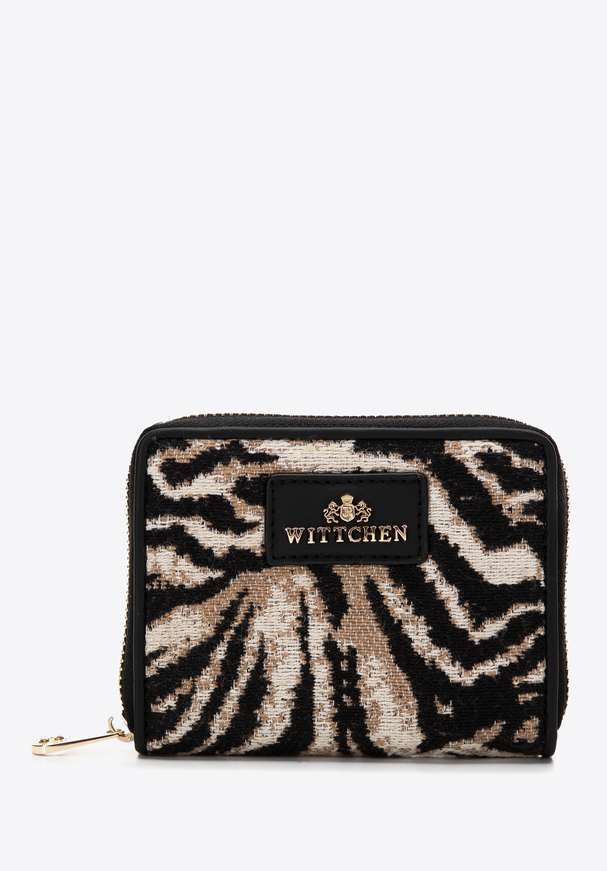Specyfikacja: WITTCHEN Damski portfel wzorzysty na suwak mały czarno-beżowy