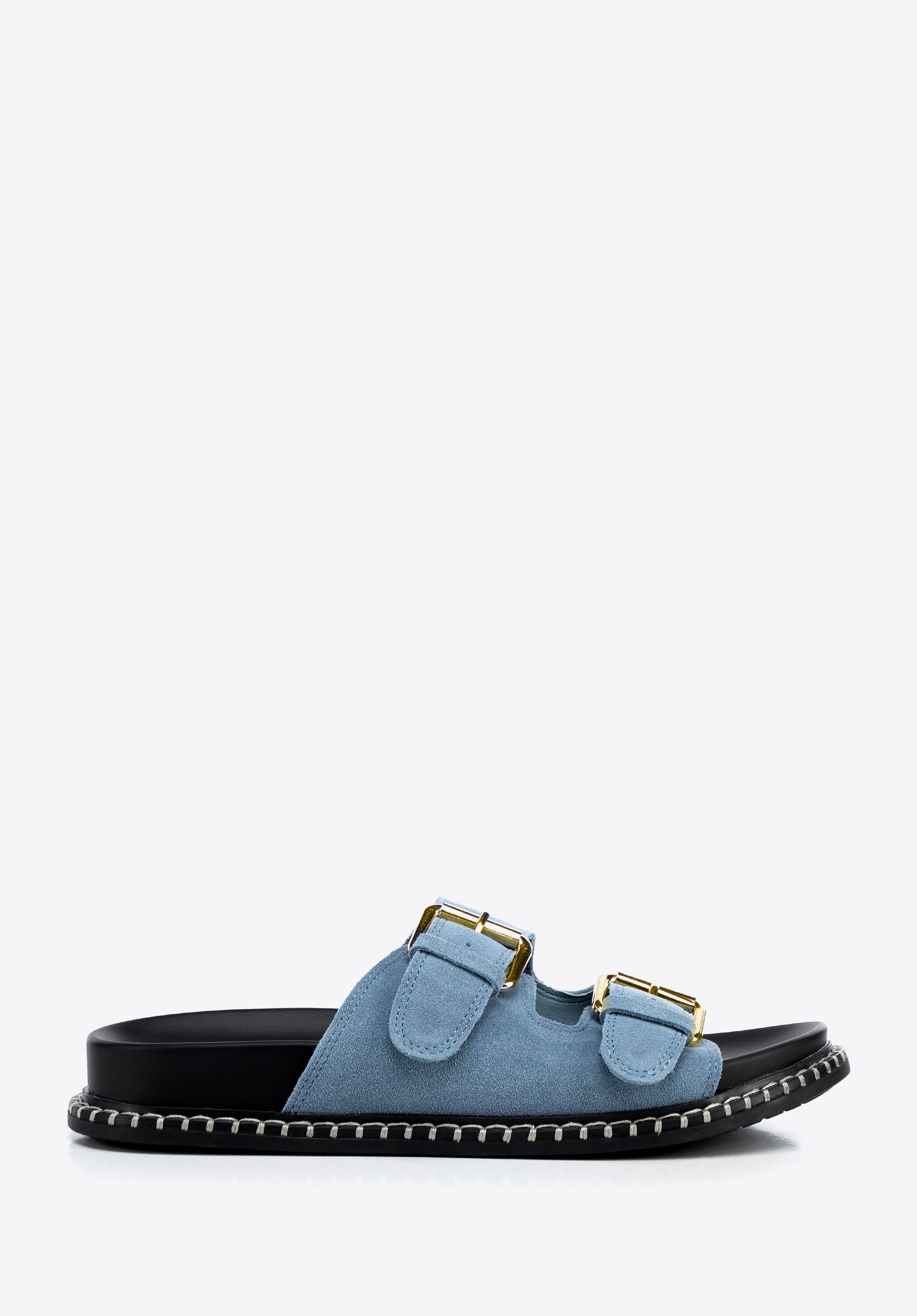 WITTCHEN Damskie klapki ze skóry zamszowej niebieskie