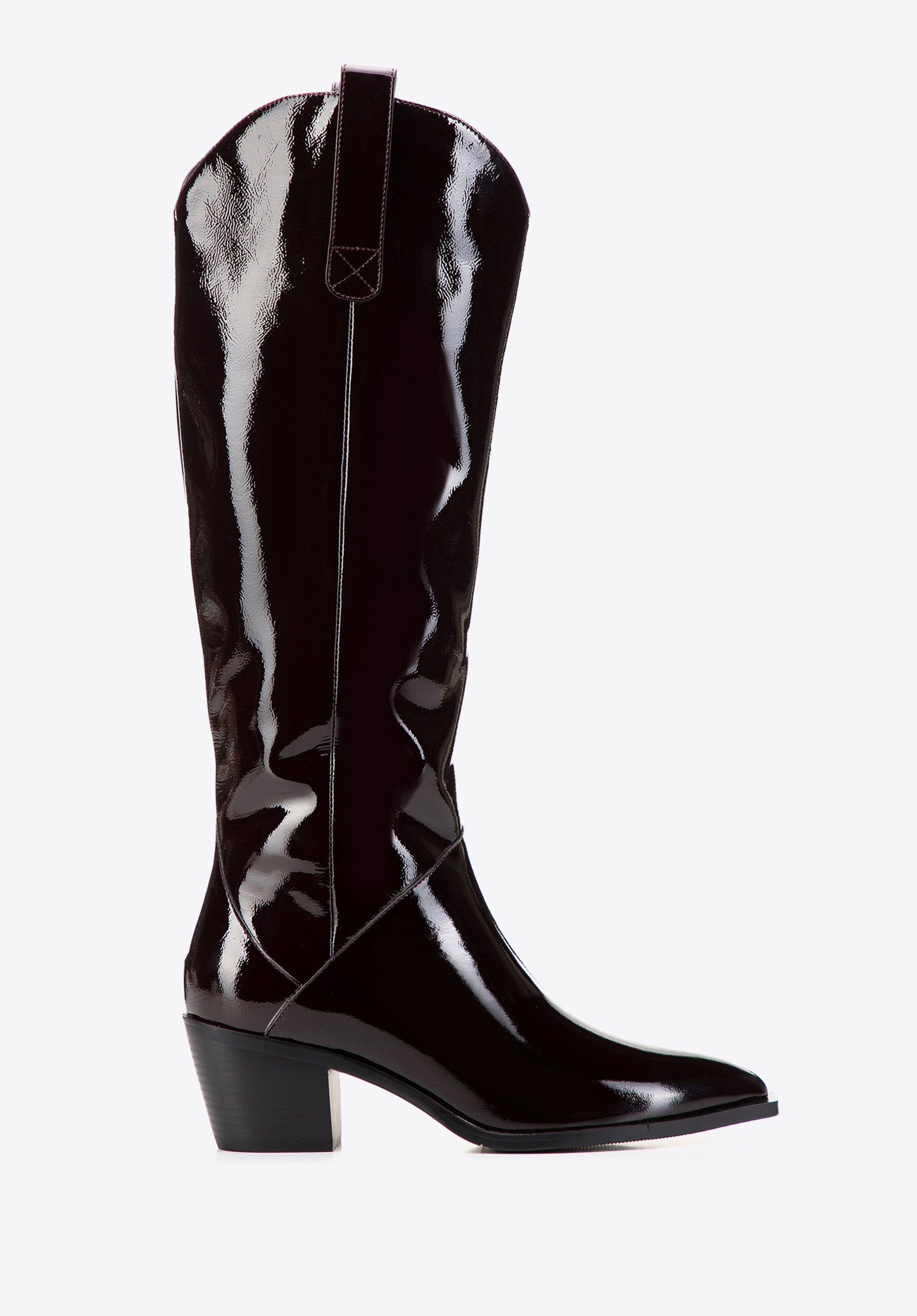 Specyfikacja: WITTCHEN Damskie kowbojki ze skóry lakierowanej wysokie ciemny bordowy