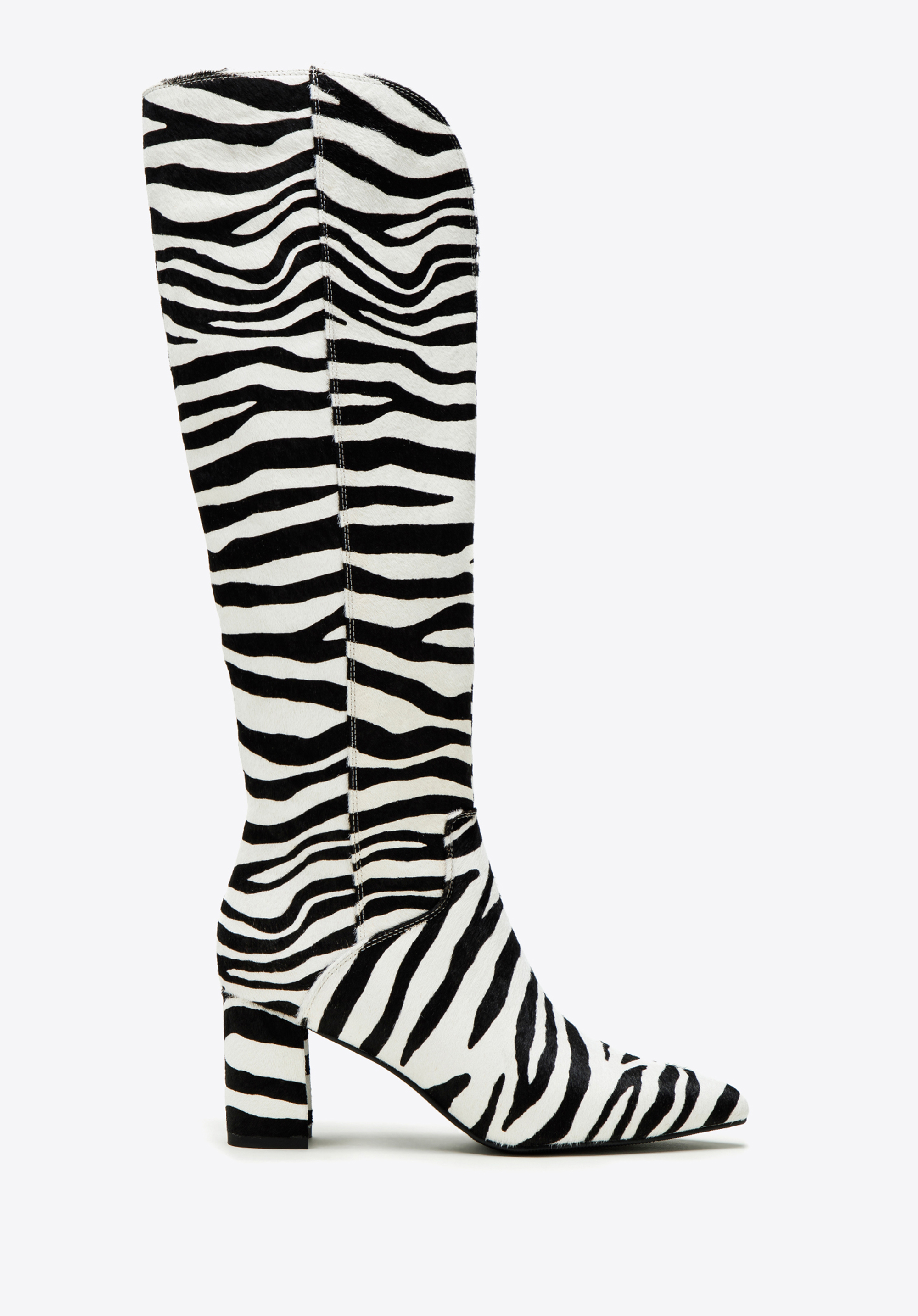 Te wyjątkowe kozaki damskie to propozycja dla kobiet, które pragną wyróżnić się z tłumu i dodać swoim zestawom odrobinę ekstrawagancji. Klasyczny fason został przełamany modnym motywem zebry, tworząc harmonijne połączenie elegancji z nowoczesnym designem. Buty emanują pewnością siebie, przyciągając wzrok i stając się centralnym punktem każdego stroju.