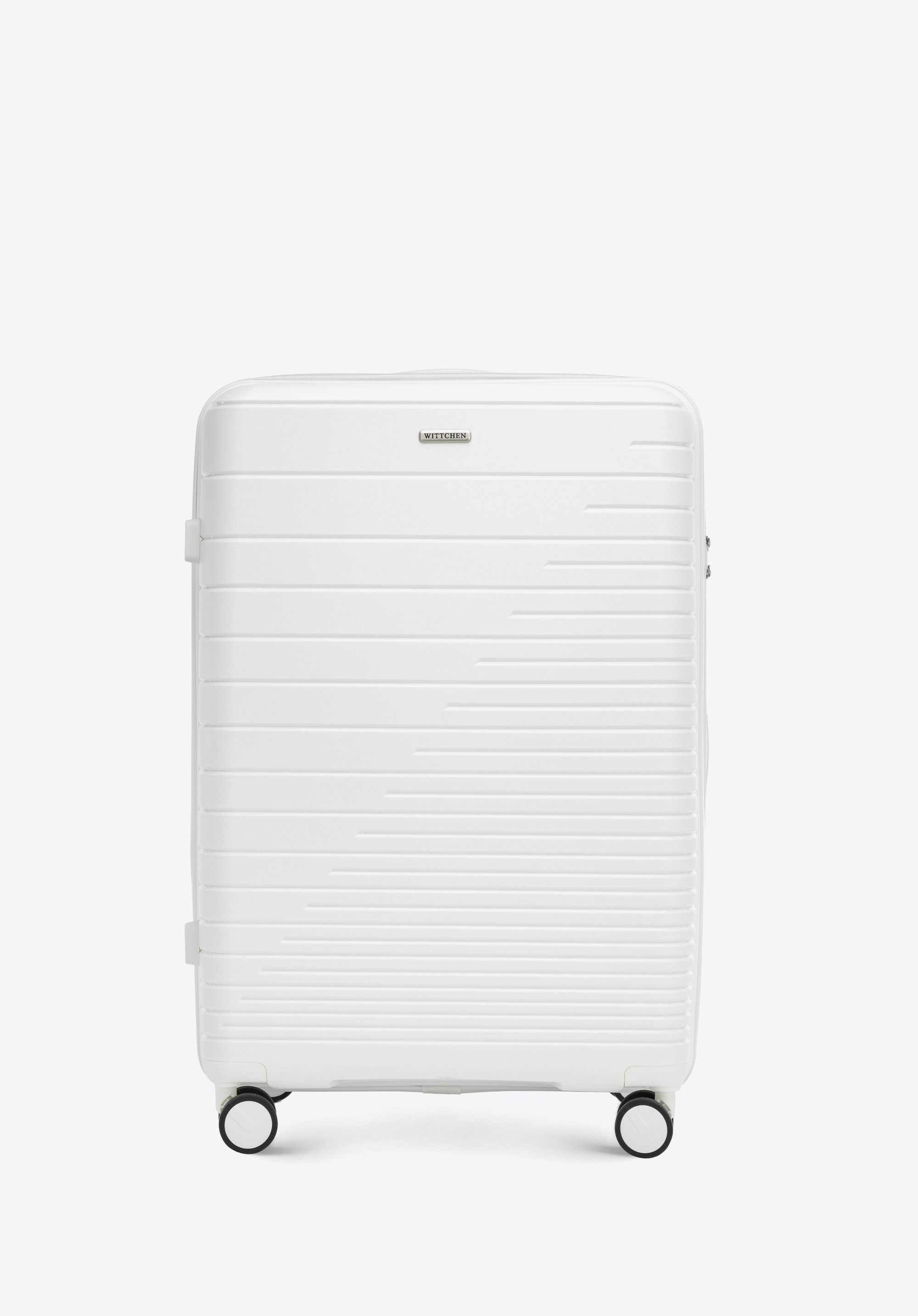 WITTCHEN Duża walizka z polipropylenu z błyszczącymi paskami złamana biel