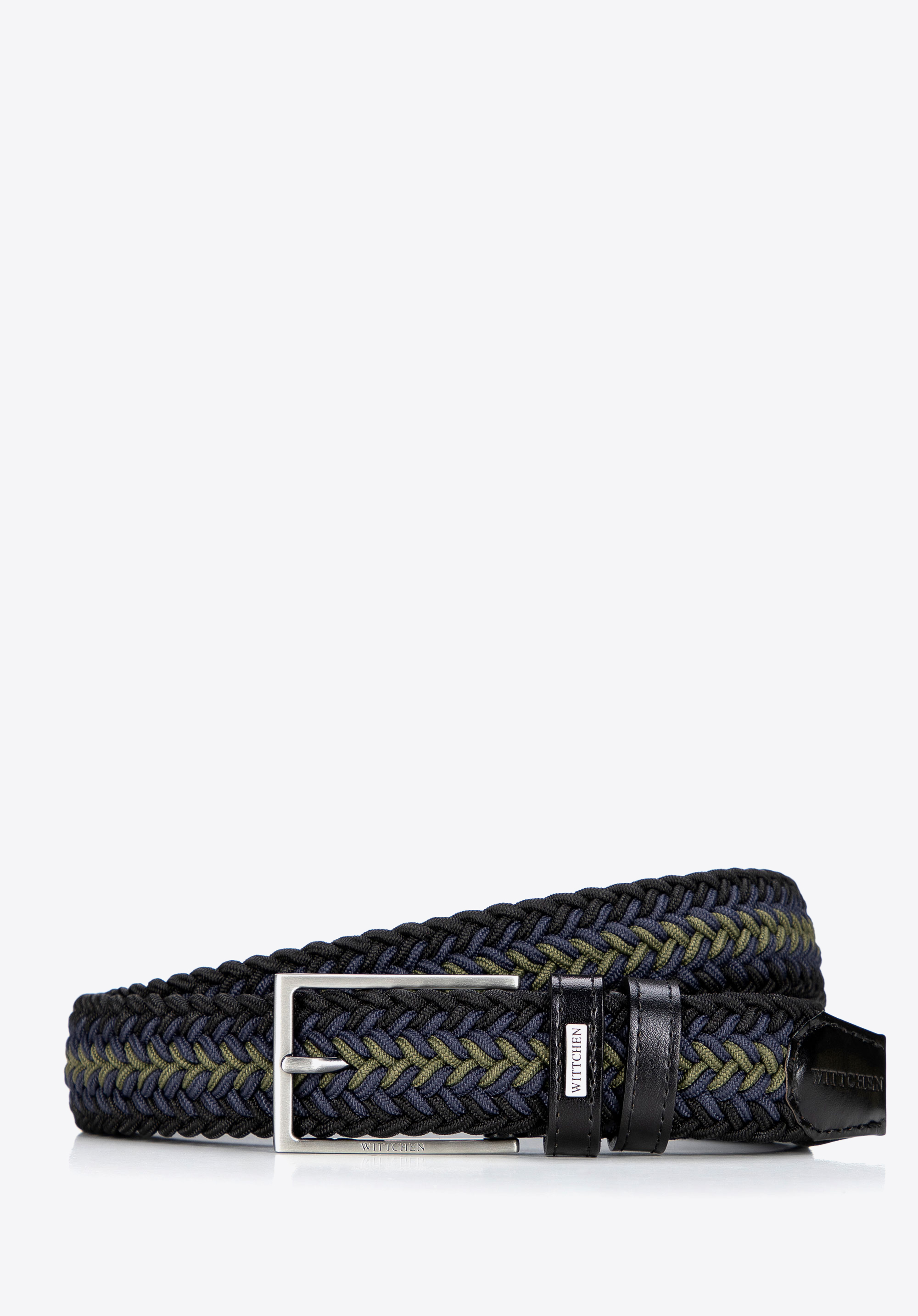 Pasek męski Wittchen to stylowe połączenie klasycznej plecionki z nowoczesnym designem w kolorze czarno-zielonym. Wykonany z elastycznego materiału z dodatkiem skóry naturalnej, zapewnia idealne dopasowanie do sylwetki bez konieczności używania dziurek. Srebrna, metalowa klamra z logo marki dodaje akcesorium wyrafinowanego charakteru.
