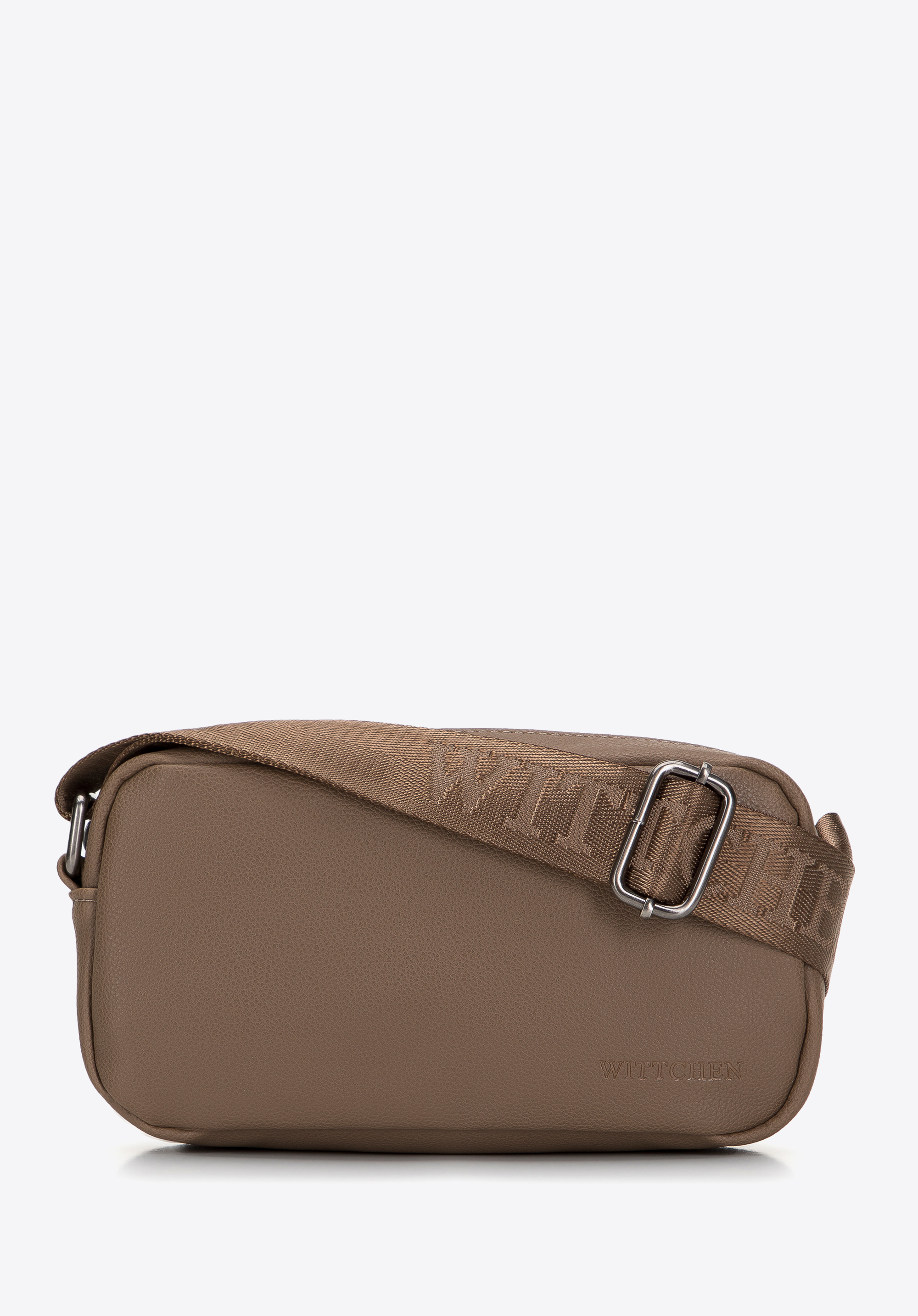 Akcesorium zostało wyprodukowane w 100% z wytrzymałej skóry ekologicznej, która charakteryzuje się odpornością na codzienne użytkowanie. Wnętrze skrywa jasną podszewkę z logo marki oraz trzy praktyczne kieszenie, w tym jedną zabezpieczoną suwakiem, ułatwiającą organizację drobiazgów. Całość dopełnia szeroki, regulowany pasek z haftowanym napisem Wittchen, gwarantujący komfort noszenia na ramieniu lub na ukos.