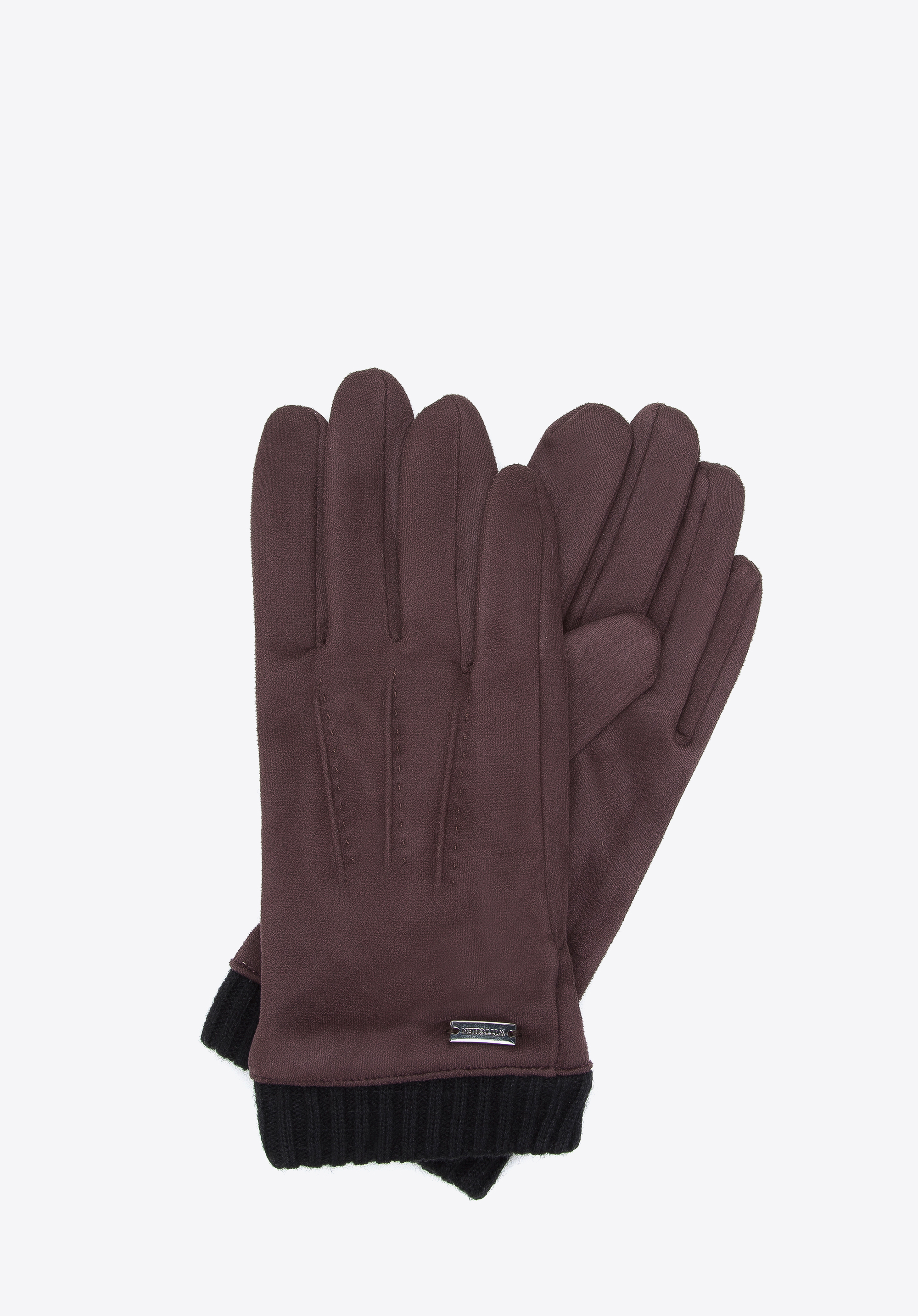 Brązowe rękawiczki Wittchen to elegancki dodatek wykonany z materiału imitującego zamsz. Model wyróżnia się stylowymi, ukośnymi przeszyciami oraz elastycznym ściągaczem na nadgarstku, który zapewnia idealne dopasowanie do dłoni. To doskonały wybór dla mężczyzn ceniących klasyczne akcesoria o nowoczesnym wykończeniu.